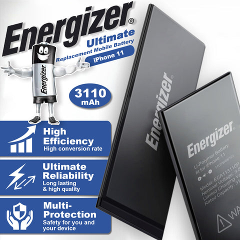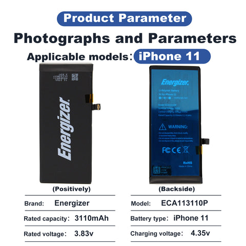 Brand: Energizer Type: Mobile Phone BatteryApplicable mobile phones: Apple iPhoneMobile phone model: iPhone 11Model: ECA11PM3969PLimited Charging Voltage: 4.35VNominal Voltage: 3.83VRated Capacity: 3110 mAh